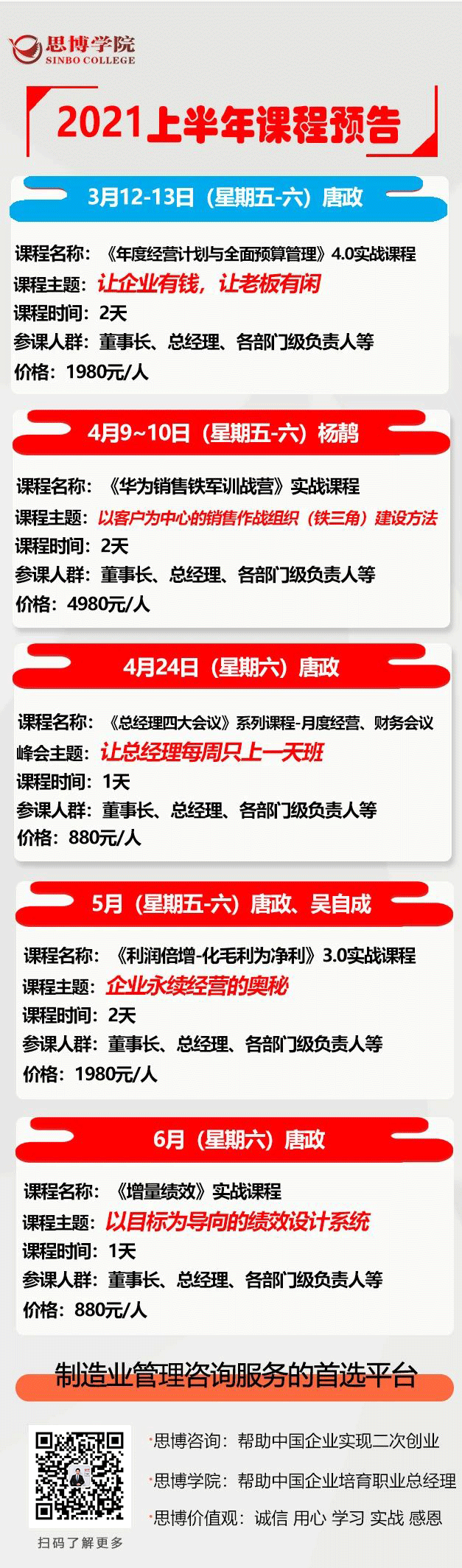 思博2021上半年課程預告